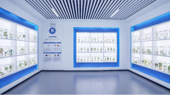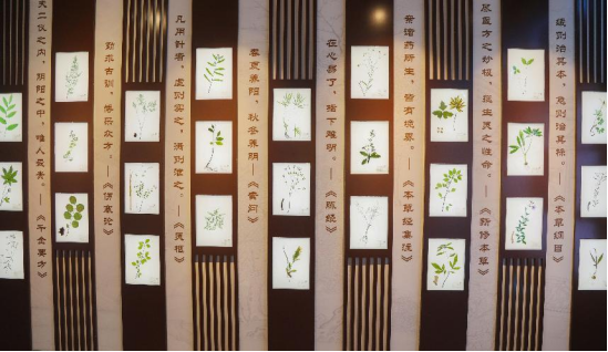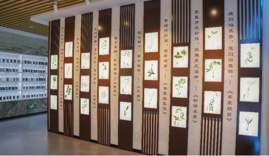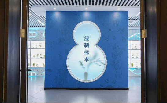 1.中药浸制标本区,大部分标本是药学院教师带领学生采集并制作的。在采集和制作标本过程中,同学们充分发挥了现代学院提倡“七个一”自我提升中的每日一劳动和每日一运动,通过实践教学环节拓宽了学生视野,培养了分析问题和解决问题能力。采集的植物标本按不同试剂比例经过特殊浸制方法浸泡,使400种药用植物栩栩如生,无季节差异地呈现在大家眼前,随时能满足教学需求,帮助学生掌握植物生态特征、来源、采收加工、药材性状鉴别等知识点,为《药用植物学》《中药学》《中药鉴定学》等课程的教学提供了更直观的教具。还可以服务社会为参观者零距离展示中药的神奇魅力,为中医药传统文化的普及、弘扬做出贡献。