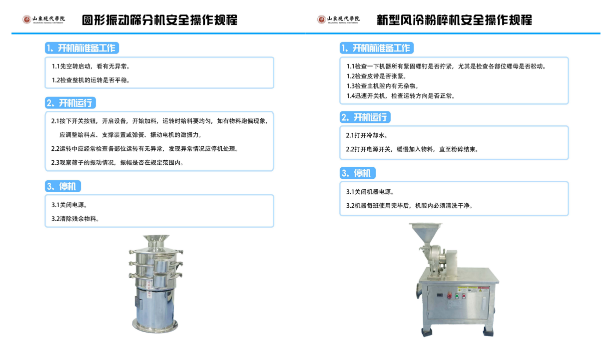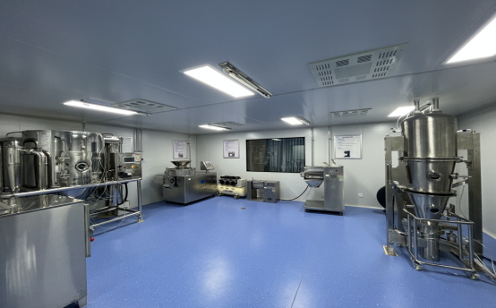 2.颗粒剂生产车间内设四种制粒设备,包括摇摆式颗粒机、快速混合制粒机、流化制粒机、旋转制粒机,涵盖了制药企业常用的制粒方法和设备。车间还有喷雾干燥器,液体药物可以干燥得到粉状物料。